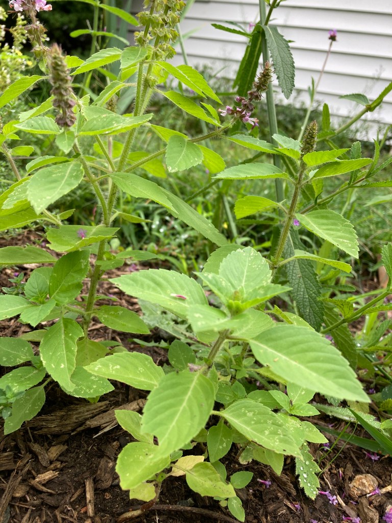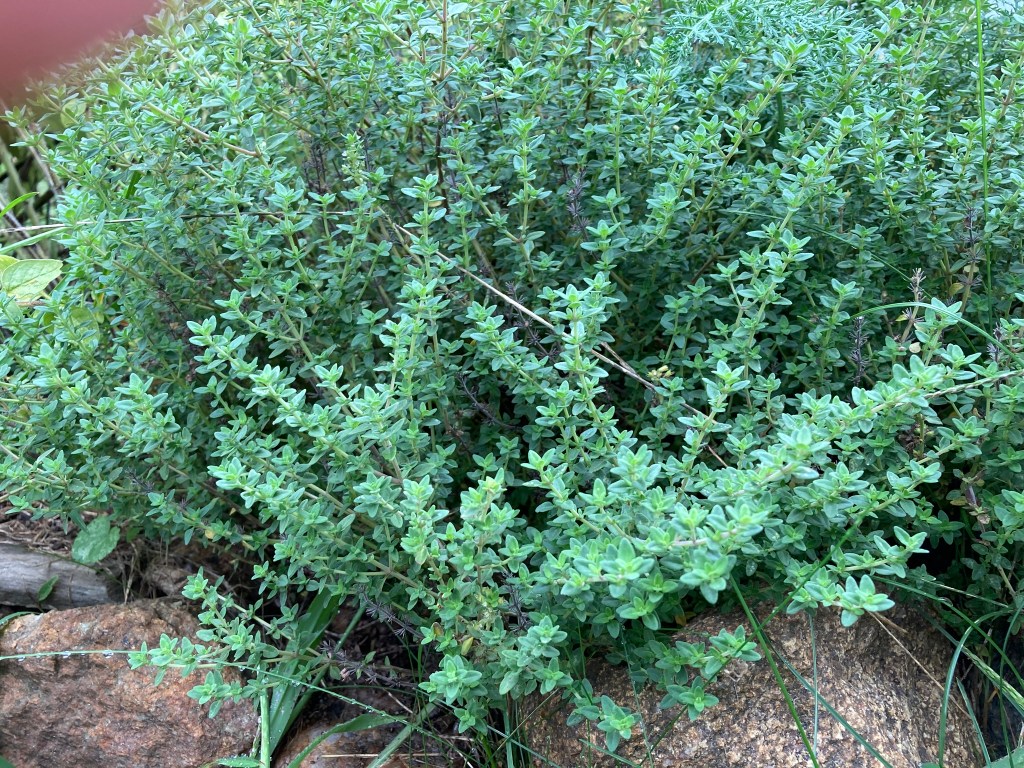 Each of these plants has it’s own energy and, I believe, sentience. For years I’ve had thyme, sage, peppermint, rosemary, and oregano growing. There’s also lavender, tulsi (holy basil), basil, parsley, lady’s mantle, lemon balm, lemon verbena … I know these plants; the perennials have been split, moved around, and taken root in more than one place around the property. The self seeding plants have reappeared, magically, near to their original spots. They have been in my cooking, giving flavor and brightness to our meals, been tea, food for butterflies, hummingbirds, yellow finch.