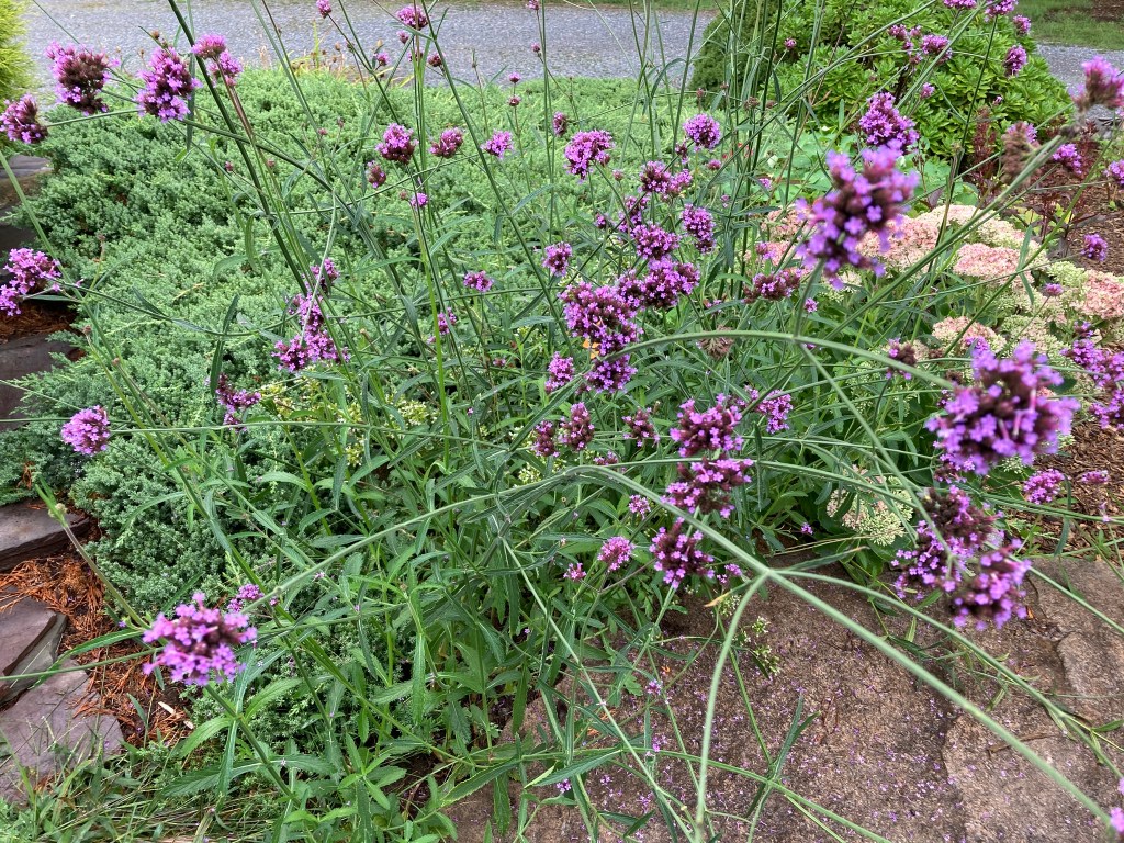 We have a little stone walkway that leads to our kitchen door; it ends, or begins, at our driveway. Next to the walkway I’ve planted herbs—many of which I brought with me from my last little house — to cook with. Also, they make my house a home.