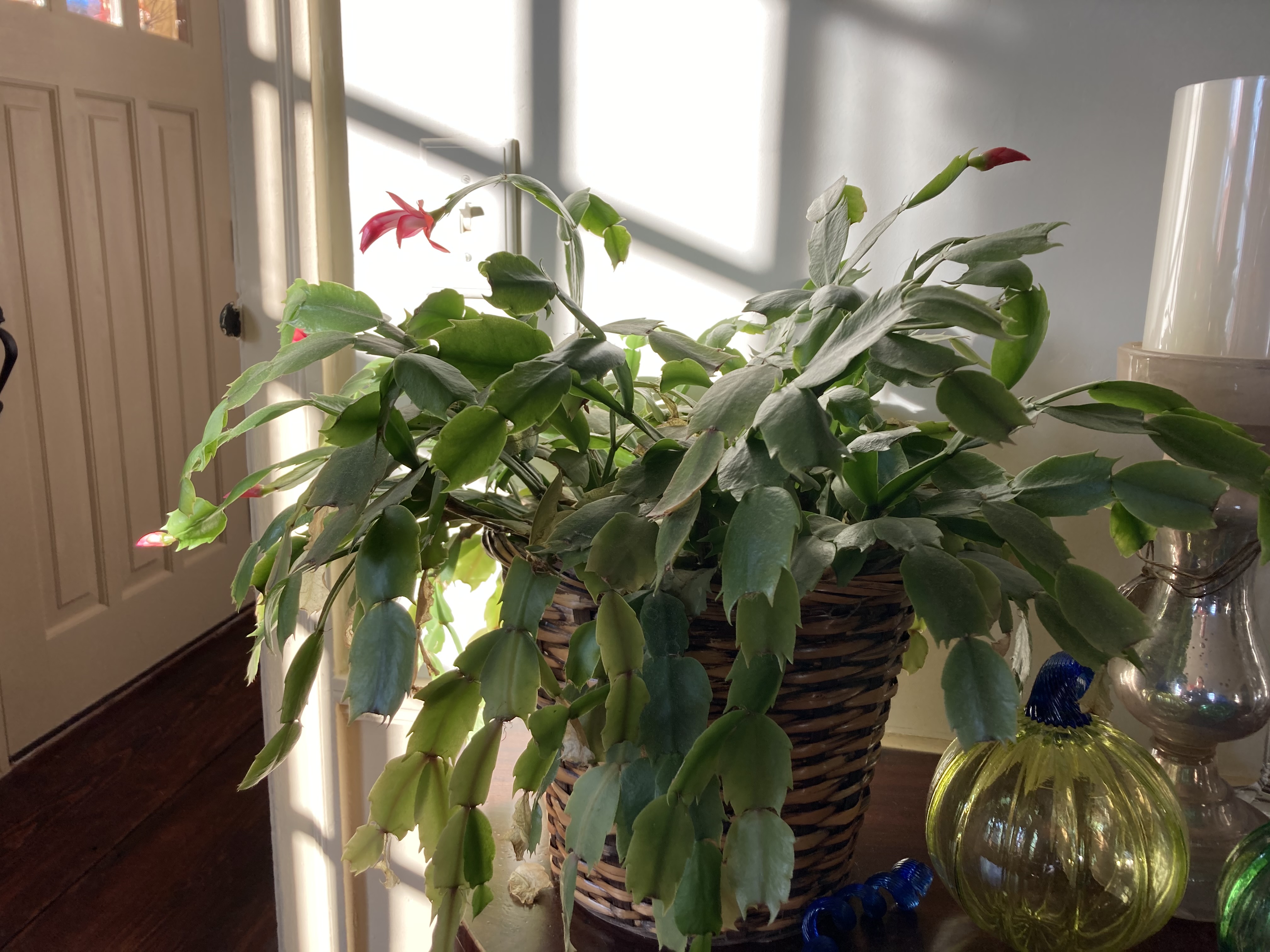 This Christmas Cactus was discovered lying on it’s side on the floor of a Walmart at Christmas time. One night after work I stopped on my way home from the office to shop for some ornaments. I wanted to decorate the first Christmas tree I would have living on my own after finishing college and moving into an apartment.