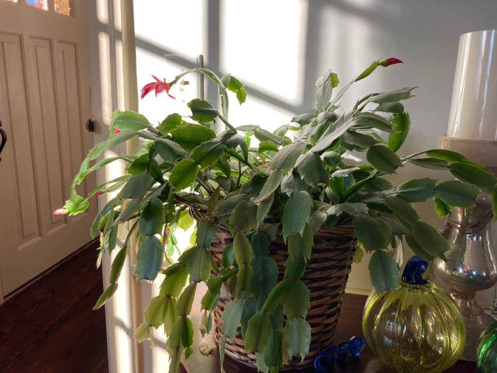 As you can see in the photo, it’s doing it again. I found a spot not far from a south window that it seems to like well enough. It’s faithful in its timing – it blooms every November and is done before Christmas.