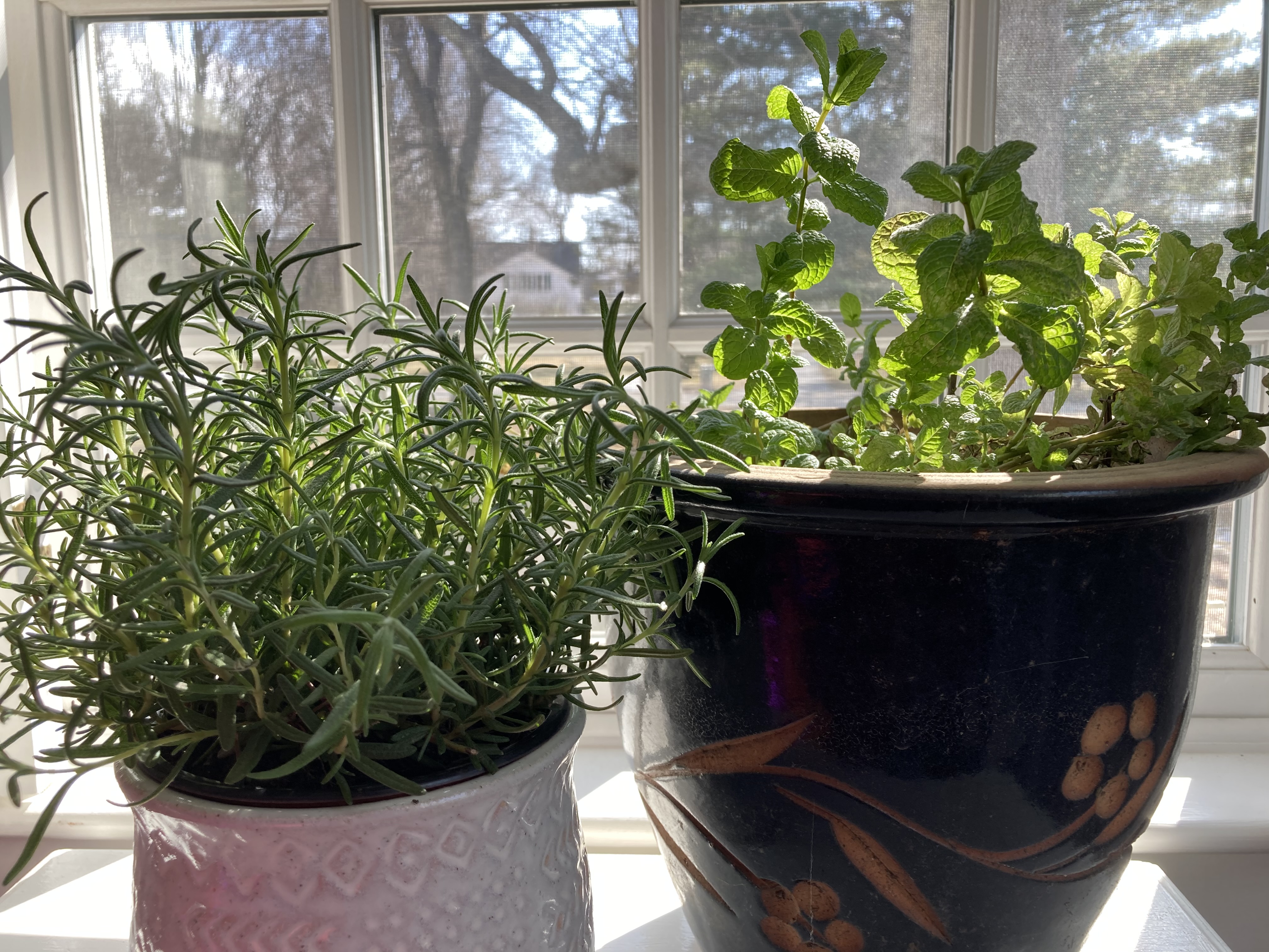 I keep peppermint and rosemary in my office year-round in a sunny window because they are beautiful, give the room a wonderful fragrance, and have a lively energy that grounds me. It is fun and rewarding to experiment with herbs to find which ones speak to you – which aromas you find the most pleasing, which of them you find the most beautiful, which ones thrive with you, and of course, which ones contribute most to your well-being.