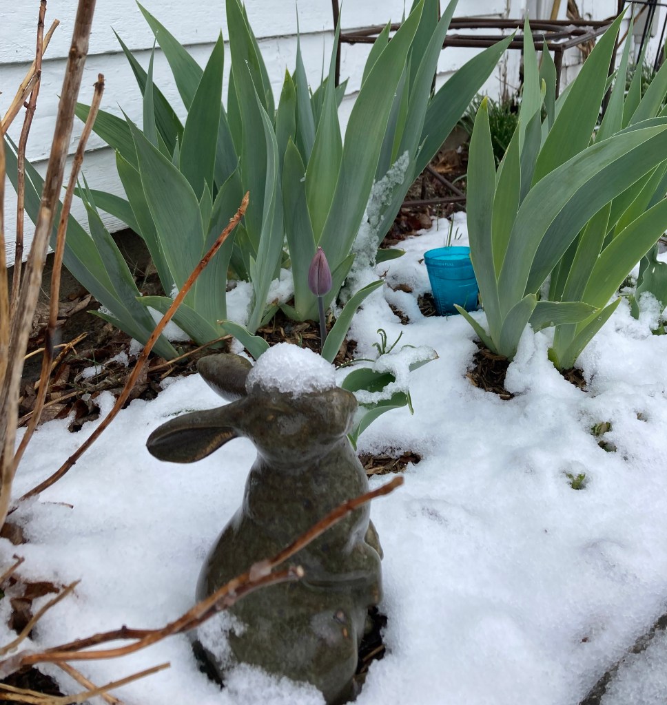 But this just goes to show you that mother nature likes a joke now and then. Strings of days over 70 with sun … who can resist going to the garden center and bringing home some new lovelies … ? … and then a little mid-April wind and snow to keep us on our toes and out of the garden.