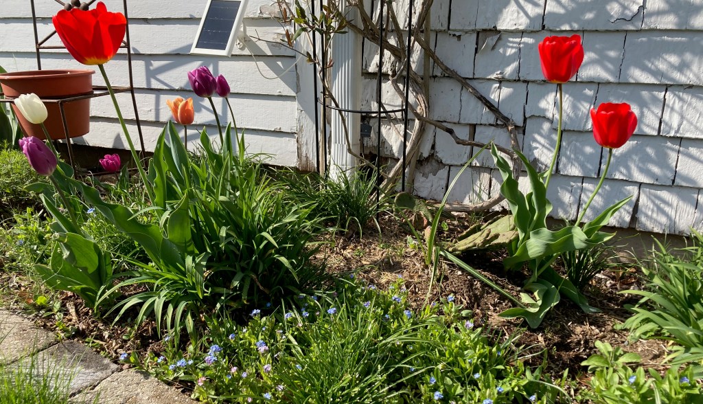 This year, though, I found myself reflecting on how planning, patience, and a small amount of relaxed acceptance really paid off. Planning the garden, planting, and letting go of expectations resulted in a mellow kind of waiting that ended with spring colors appearing all around. It could have gone differently. Maybe I wouldn’t have had so many blooms or the deer might have eaten every tulip the day they bloomed. Happily, though, the gardens are beautiful.