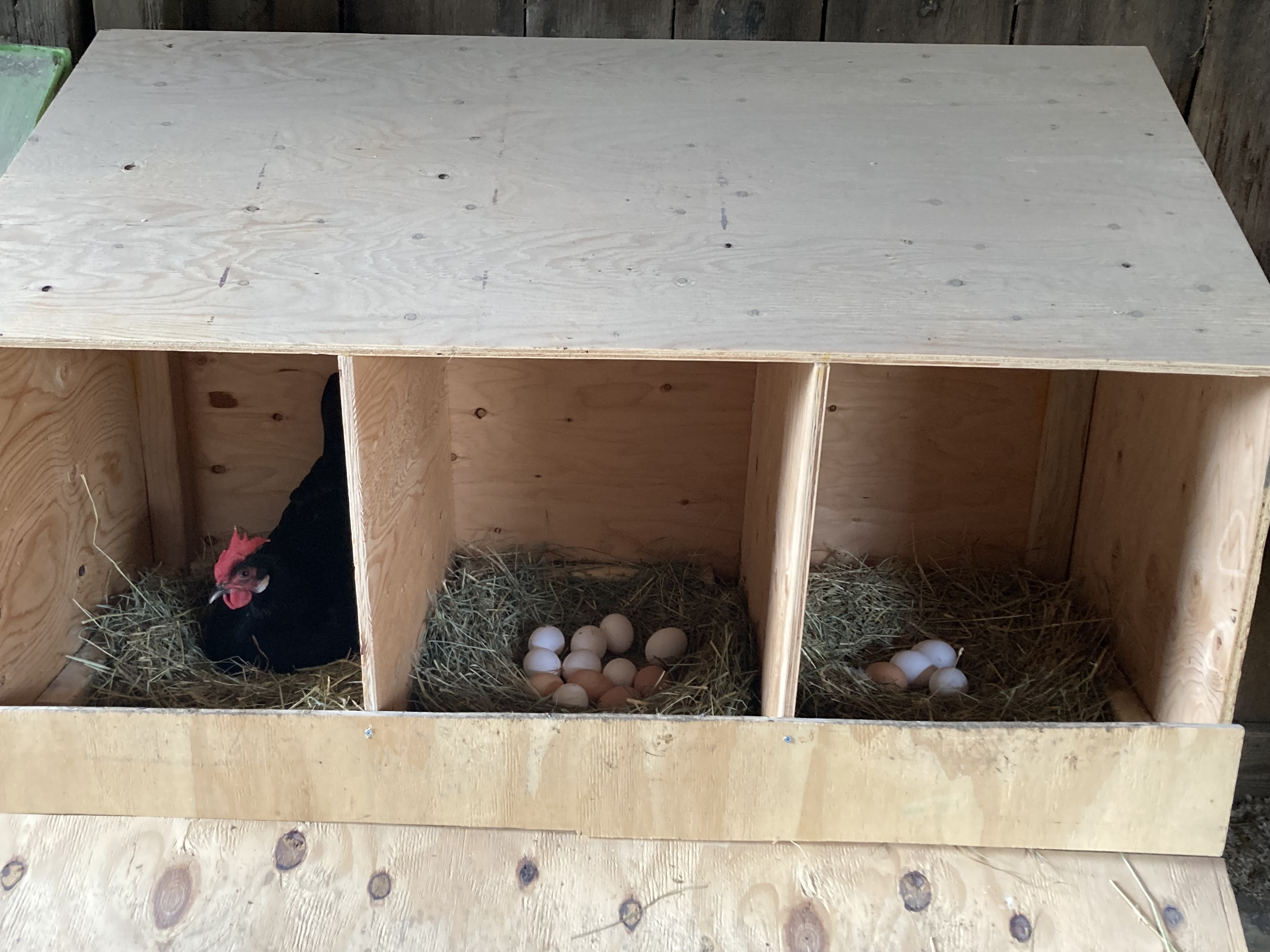 Now our girls, based on my advanced math (number of eggs – number of chickens), produce more than one egg per chicken on some days. And even though I love to cook and bake– and I really like scrambled eggs with fresh chives from the kitchen garden and flourless chocolate cake– that is just too many eggs for us to eat.