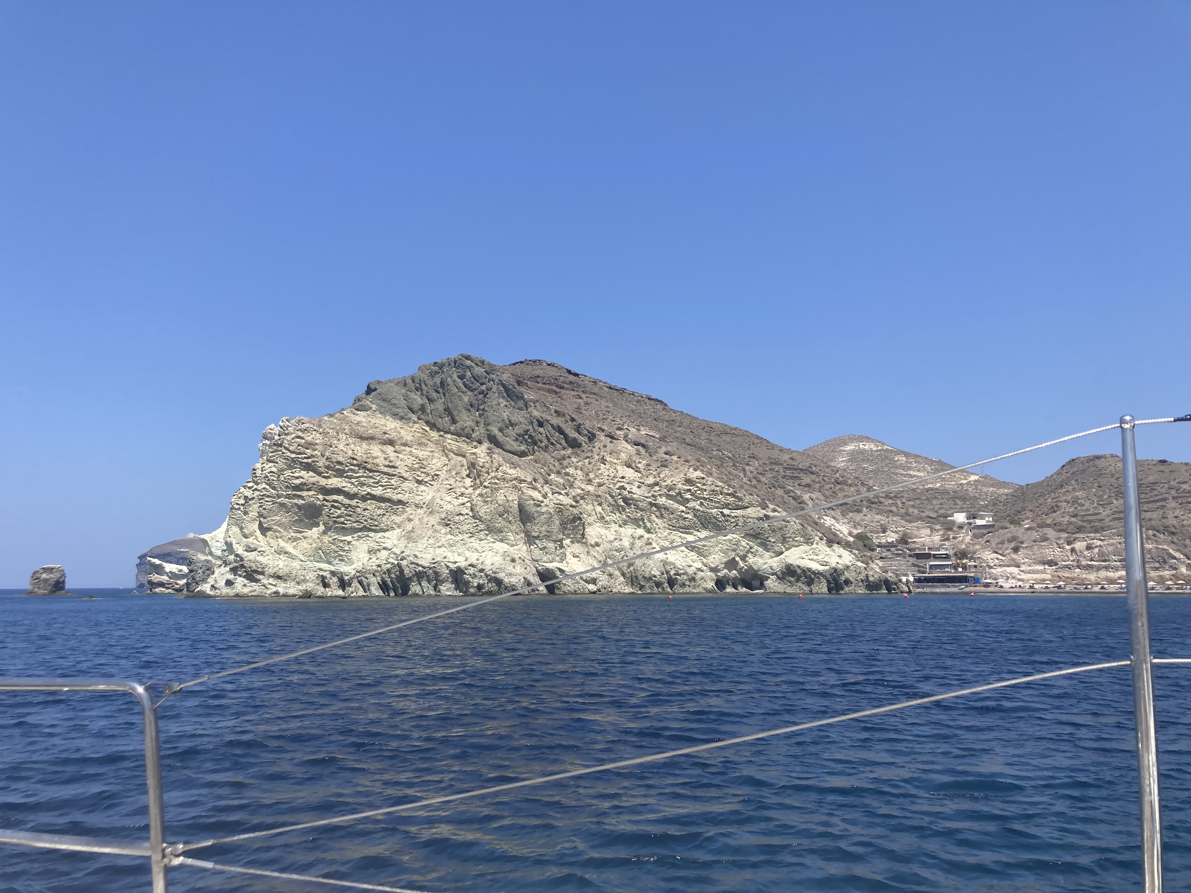 Aside from relaxing over the water and catching many rays, the views are mind blowing – and cannot be done the remotest justice with my camera – and one can truly get a sense of the place. The others on the tour were mostly Americans, the “transfer” – a taxi lift – somewhat chaotic with cliffside views – ended with a drop off on the pier and a welcoming crew ready to take us out. After enjoying views of the islands we stopped to swim and the chef made us a lovely spread of all sorts of delicious food. The crew was Anatalie, Cosmos, and two other unnamed smiling crewmates – one identified as “the chef!” and one that steered the catamaran. Anatalie navigated the shifting deck with true sea-legs, taking pictures on request and answering questions. Cosmos, an agriculturalist that grows olive trees in a place I can’t remember on the mainland, was friendly, talkative, down to earth, and tied us up at all stops.