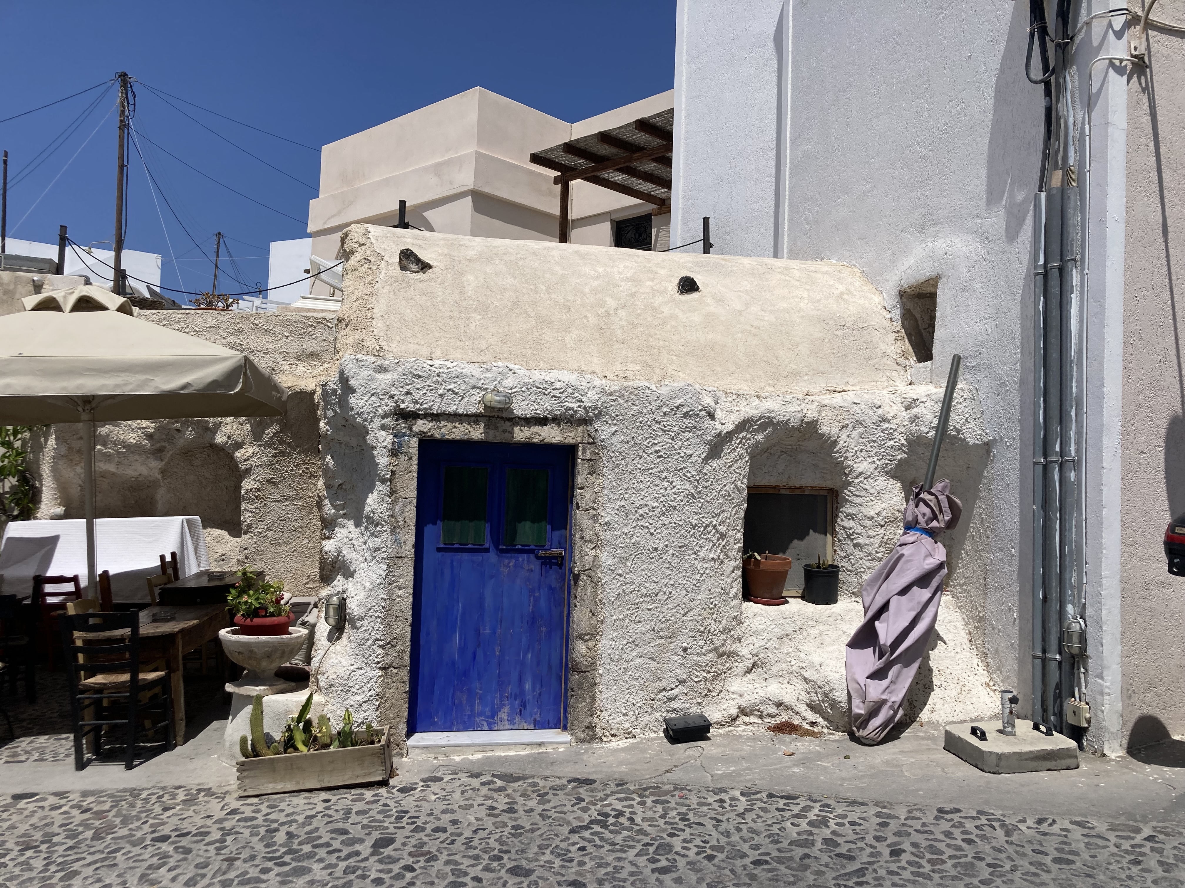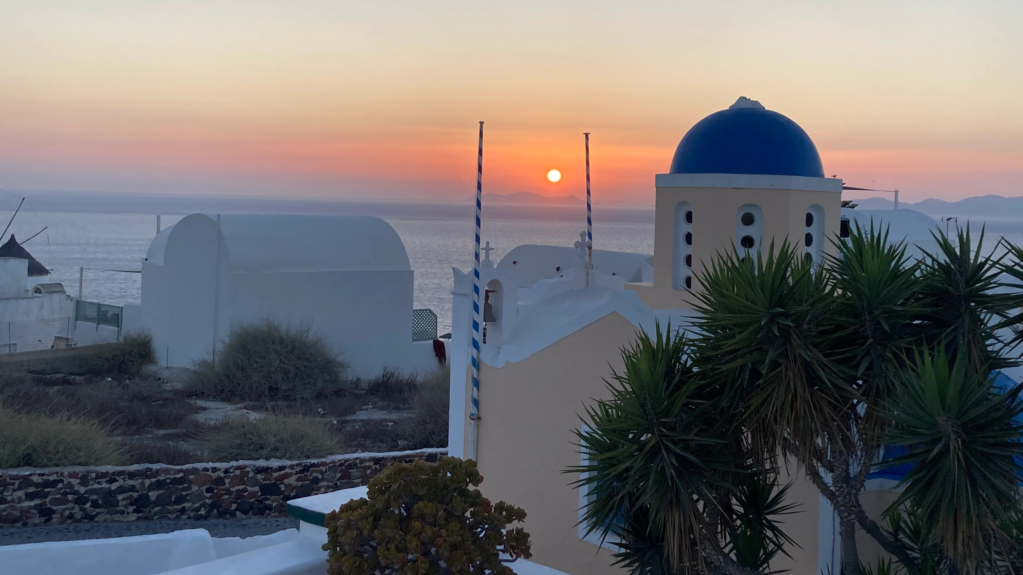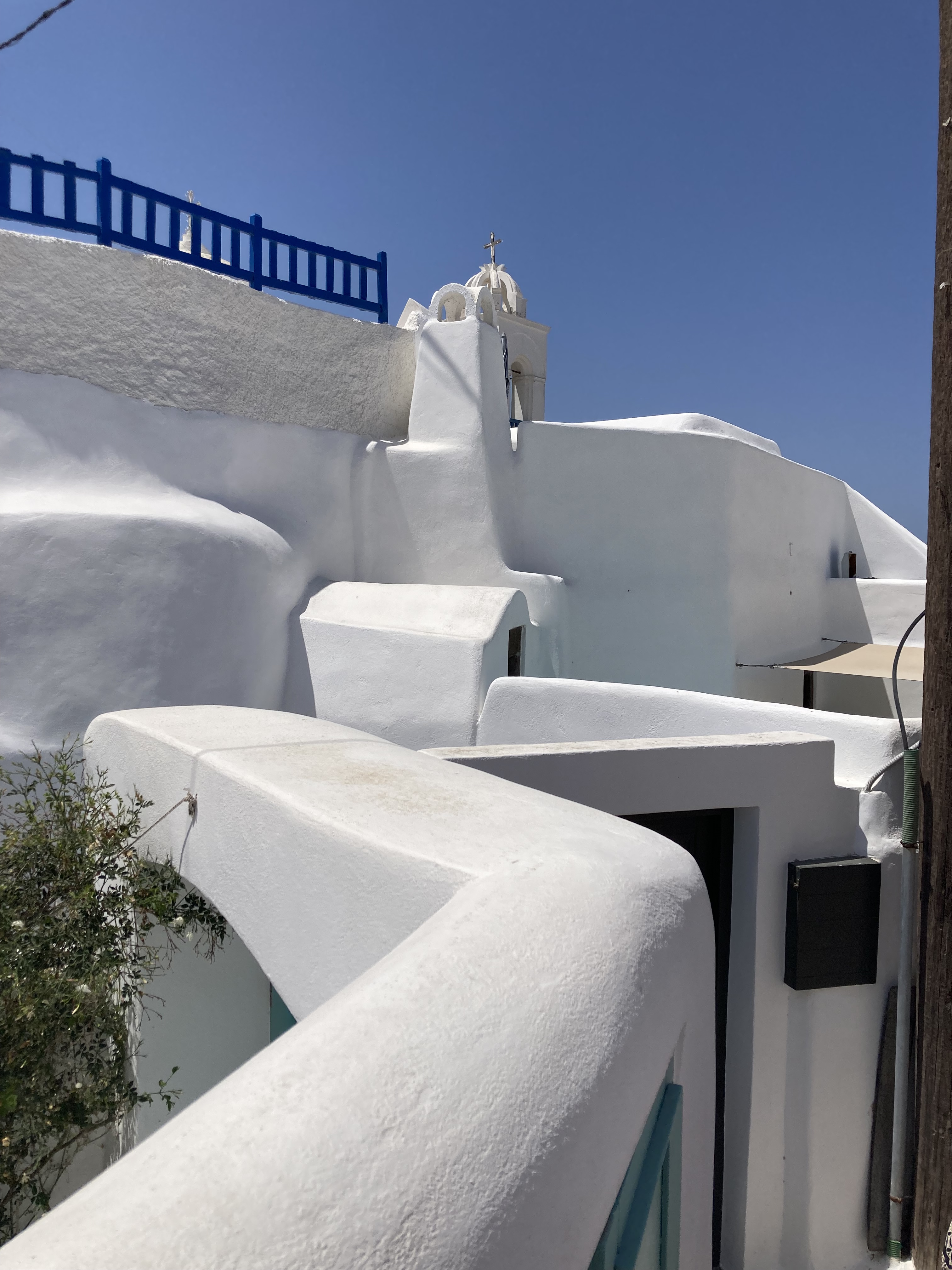 Santorini is volcanic, sun drenched. It’s dramatic, beautiful, and full of art. This week, it’s also hot as hell. There are fires in Rhodes – another island in the greek Aegean. But here, it’s business as usual, except for the heat.