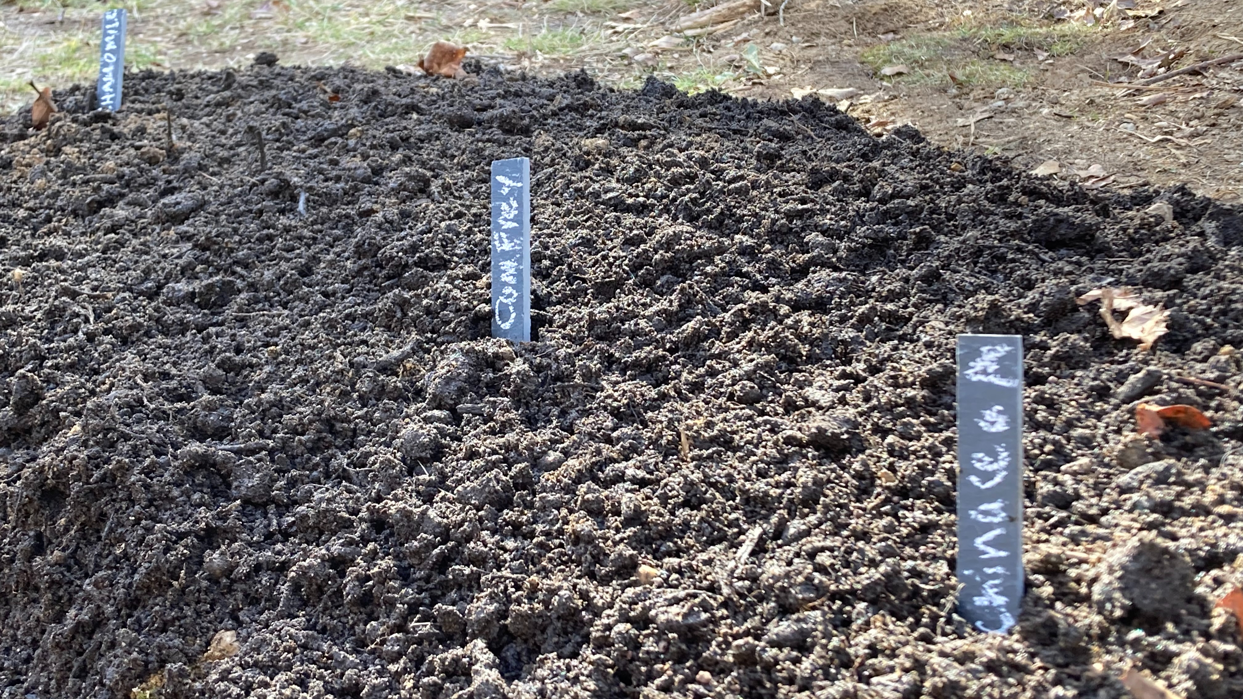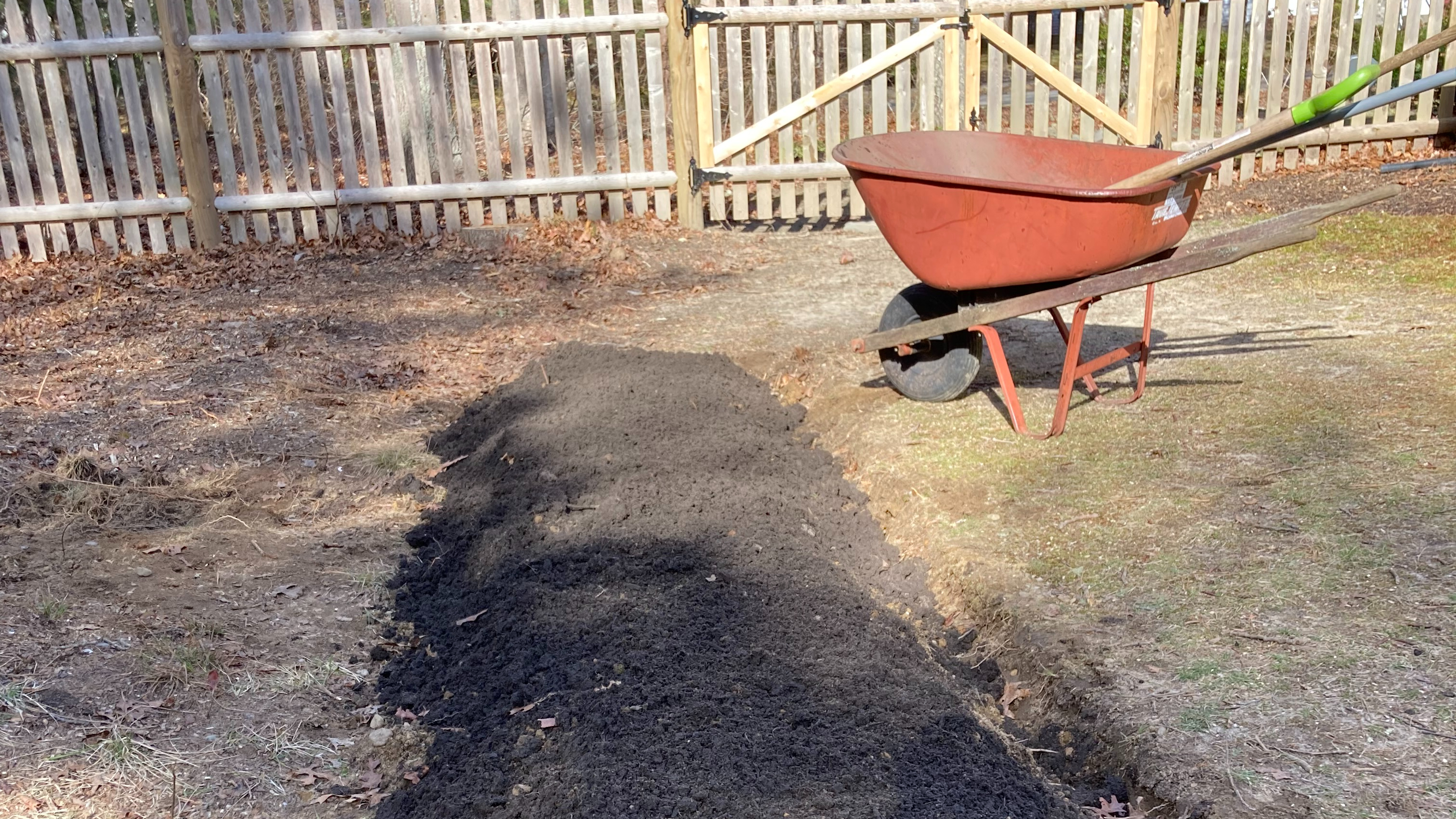 Cape cod soil is pretty much what you’d expect … sand and clay. And lots of it. So we trucked in some planting soil and started clearing away vines and debris in a sunny spot to the west of the house.