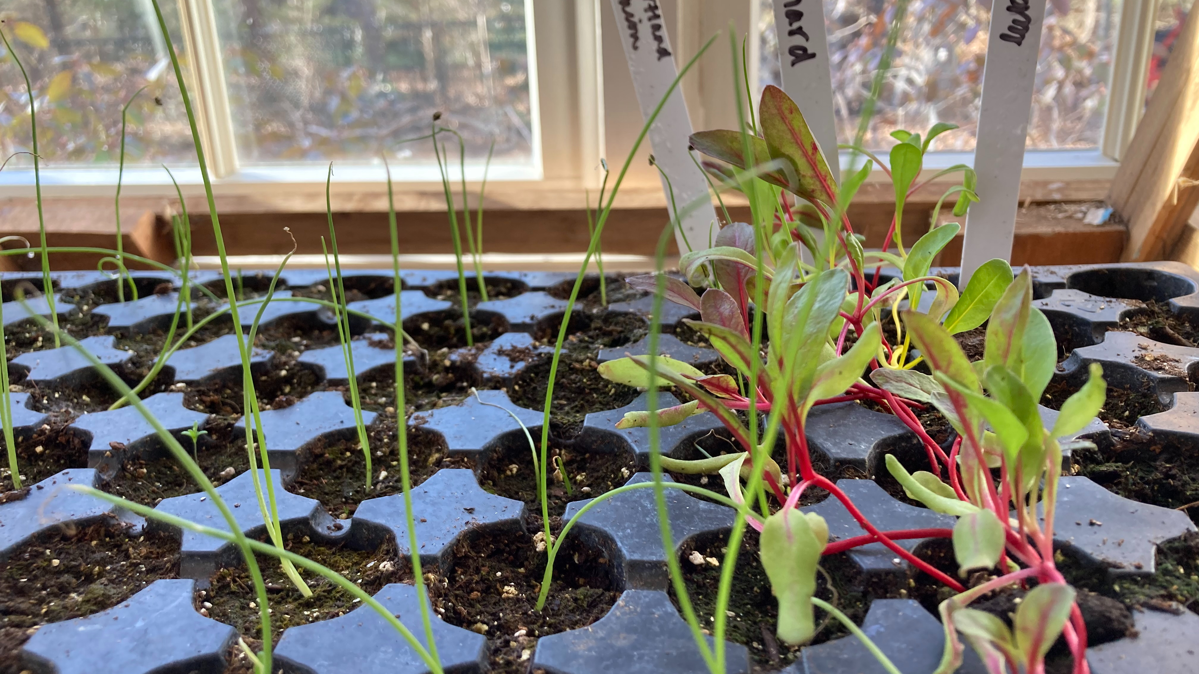 Finally, the onions and kale I started early are coming along. I added a few leek seeds in later, to the right, and I’m waiting for those to germinate. Later this month it’ll be lettuce, broccoli and cauliflower.