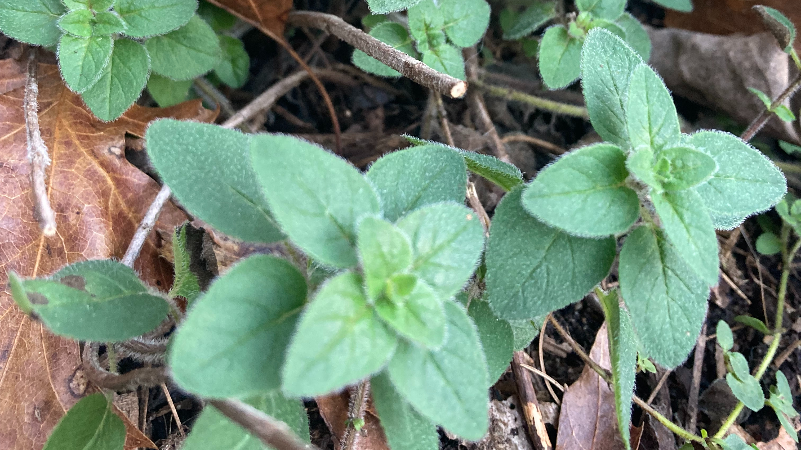 Oregano, still tender and green after a summer haircut, winters over beautifully to emerge again in the spring…